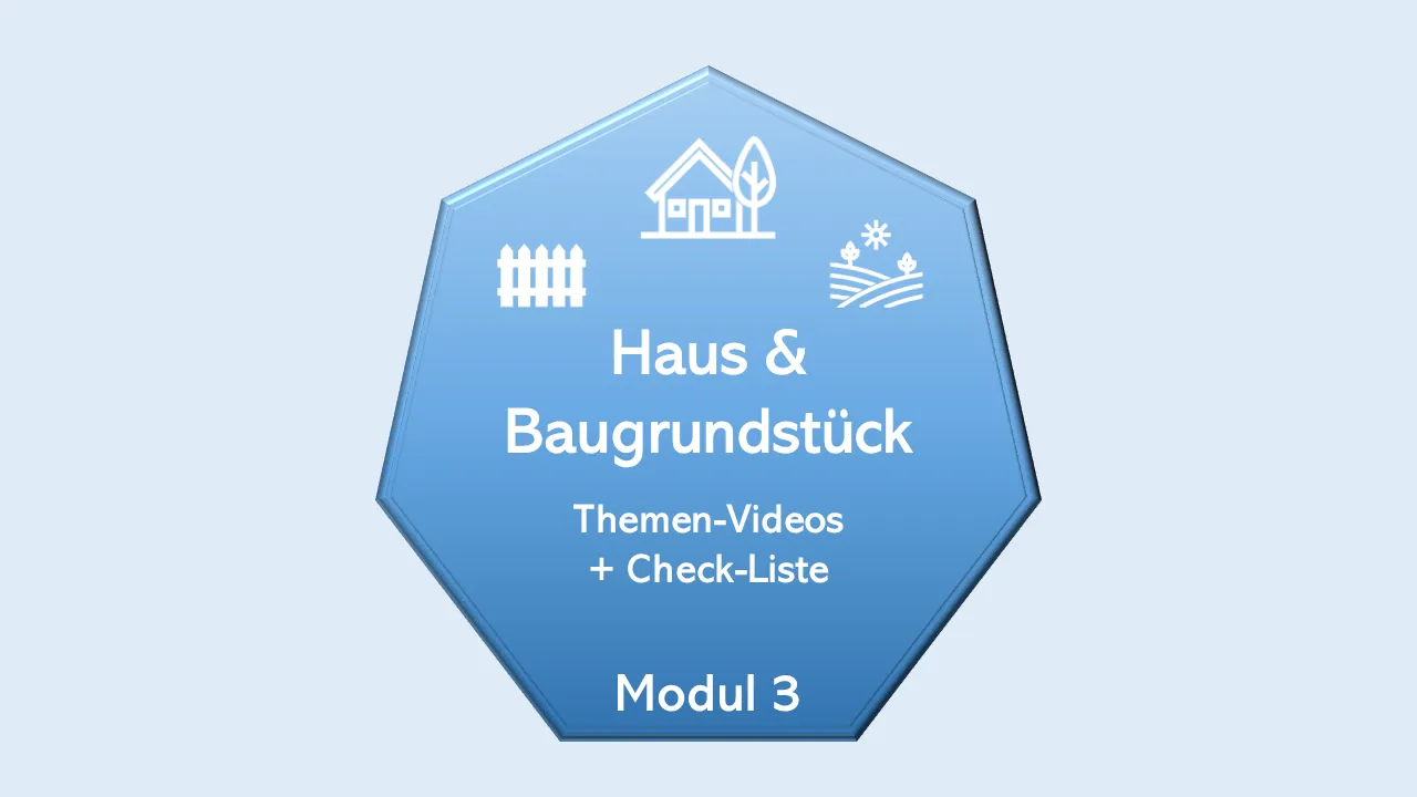 In "Modul 1 - Meine Optimale Baufinanzierung" bekommst du einen detaillierten und umfassenden Überblick zum Thema Baufinanzierung aus Bauherren-Perspektive. Neben vielen wertvollen und hilfreichen Informationen und Tipps erfährst du z.B.... ...wie du durch das Einplanen des Kostenpakets "Abnahme und Kontrolle der 5 Hauptgewerke" in dein Baubudget, bis zu 10.000,- € oder sogar höhere Mehrkosten wegen Baumängel bei jedem Baugewerk einsparen kannst (Themenvideo 1 - Gesamtkosten & Kostenaufstellung). oder... ...wie du bei deiner Baufinanzierung mit Eigenkapital im Vergleich zur Baufinanzierung ohne Eigenkapital, über die Zinsbindungsdauer (z.B. 10 Jahre), Einsparungen an Gesamtzinsen in den 5-stelligen Bereich hinein erreichen kannst (Themenvideo 4 - Monatliche Kreditrate). Wir schauen uns gemeinsam an, welche Baufinanzierung und Fördermittel zu dir passen. In mehreren Themenvideos behandeln wir folgende für dich relevanten Themen: Modul 1 - Themenvideos - Gesamtlänge: 01 h : 52 min : 08 sec Themenvideo 1 ( Dauer: 00:29:27 ): Kap. 1 - Gesamtkosten & Kostenaufstellung Themenvideo 2 ( Dauer: 00:09:16 ): Kap. 2 - Eigenkapital Kap. 3 - Kreditsumme Kap. 4 - Sollzins & Effektiver Jahreszins Kap. 5 - Zinsbindungsdauer Kap. 6 - Tilgung & Sondertilgung Themenvideo 3 ( Dauer: 00:46:35 ): Kap. 7 - Fördermittel Themenvideo 4 ( Dauer: 00:13:26 ): Kap. 8 - Monatliche Kreditrate Themenvideo 5 ( Dauer: 00:13:24 ): Kap. 9 - Check-Liste - Meine Optimale Baufinanzierung Mit Hilfe der Check-Liste kannst du dir einen Überblick über deine Baufinanzierung nach deinen Wünschen und finanziellen Möglichkeiten verschaffen. Die Check-Liste dient dir als Hilfe-Tool und Übersichtsdokument beim Zusammenstellen deiner individuellen Baufinanzierung. Damit kannst du dich optimal auf deine Finanzierungsgespräche vorbereiten und erlebst in finanzieller Hinsicht keine bösen Überraschungen. Für die Check-Liste gibt es im Inhalt des Moduls noch zwei separate Erklärvideos, in denen das Arbeiten mit der Check-Liste ausführlich beschrieben wird. Erklärvideos - Check-Liste - Teil 1 & Teil 2 - Gesamtlänge: 00 h : 53 min : 18 sec Erklärviedeo - Check-Liste - Teil 1 ( Dauer: 00:09:31 ): Deckblatt-Inhalt Überblick Bearbeitungshinweise Check-Punkte Baufinanzierung Erklärvideo - Check-Liste - Teil 2 ( Dauer: 00:43:47 ): Check-Punkt 1 - Herstellungskosten inkl. Grundstück & Nebenkosten Check-Punkt 2 - Zusammenstellung Kostenpuffer Bau- & Planungsmängel Check-Punkt 3 - Kostenaufstellung Inneneinrichtung Check-Punkt 4 - Zusammenstellung Eigenkapital Check-Punkt 5 - Zusammenstellung Fördermitte Check-Punkt 6 - Kostenaufstellung Haus-Betriebskosten ohne Kredit - monatlich Check-Punkt 7 - Kostenaufstellung Laufende Kosten - monatlich Check-Punkt 8 - Zusammenstellung Optimale Monatliche Kreditrate Check-Punkt 9 - Zusammenstellung Optimales Finanzierungskonzept Check-Punkt 10 - Finanzierungsangebot Kreditinstitut - Gesamtbetrag Mit dem Kauf von "Modul 1 - Meine Optimale Baufinanzierung" bekommst du automatisch Zugang zur Check-Liste. Du kannst die Check-Liste aber auch einzeln ohne die Modul Inhalte kaufen und nutzen. Zugang zu den Inhalten des Beratungsmoduls und der Check-Liste: Nach Bestelleingang und Bestellbestätigung bekommst du eine separate E-Mail mit den Zugangsdaten zum Erstellen und Nutzen deines persönlichen Nutzerkontos auf der Website www.online-bauberatung.info. Über dein Nutzerkonto erfolgt der Zugang zu den Inhalten des Moduls und der Check-Liste folgendermaßen: -> Zahlung per Paypal: Die Modul-Inhalte werden sofort freigeschaltet und die Check-Liste ist spätestens nach 24 h freigeschaltet. Für die Nutzung der Check-Liste benötigst du zusätzlich ein kostenloses Nutzerkonto auf www.microsoft365.com mit deiner hinterlegten E-Mail Adresse. -> Zahlung per Banküberweisung: Nach Zahlungseingang werden die Modul-Inhalte und die Check-Liste gemeinsam freigeschaltet und sind über das Nutzerkonto zugänglich. Viel Spaß mit Modul 1 und viel Erfolg bei deinem Bauprojekt!